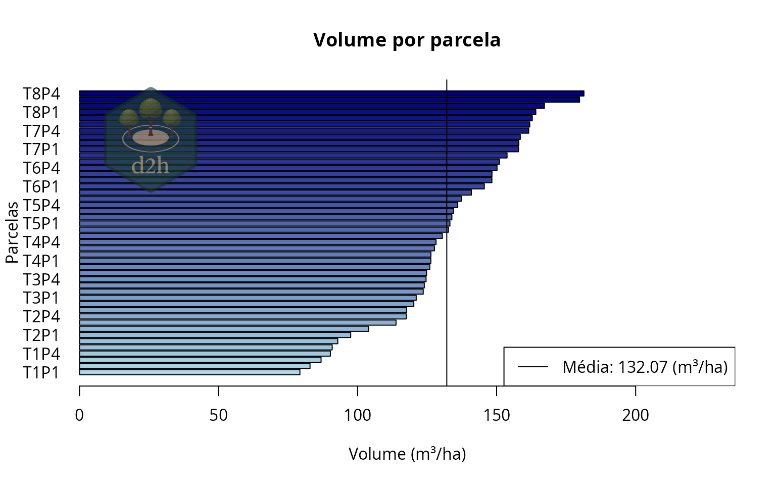 #> Volume médio(a): 132.07 m³/ha