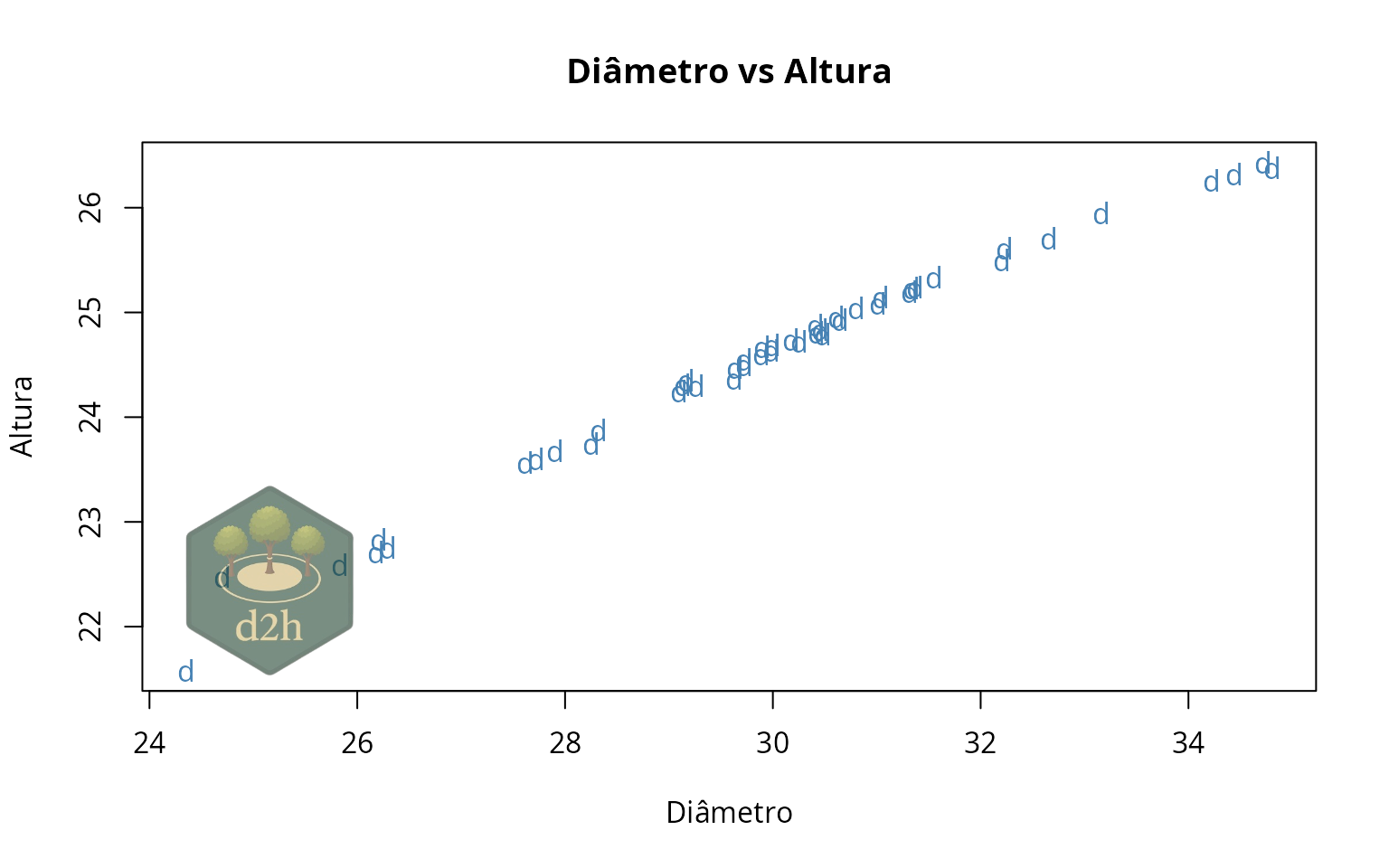 #> [1] "d2h"Veja que dessa vez outras informações são impressas na tela, especificamente sobre o tipo de geometria carregada (uma vez que foi um shapefile), bem como o aviso de que o nome das parcelas/identificador não foi informado, e portanto será presumido que cada linha é uma observação diferente, e portanto será criada uma sequência ordinal crescente de identificadores genéricos para as parcelas.